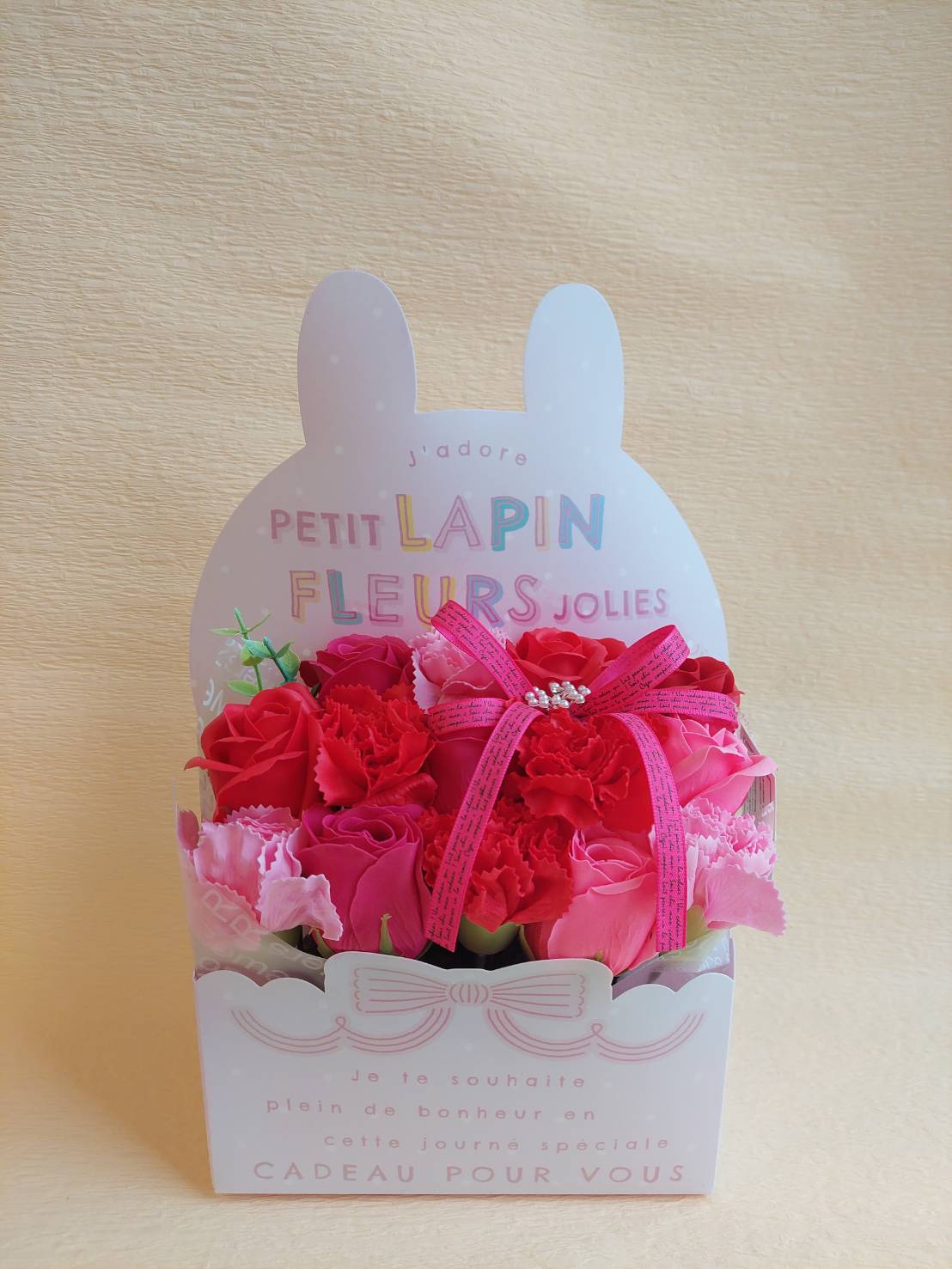 バラとカーネーションのソープフラワーアレンジ(レッド)