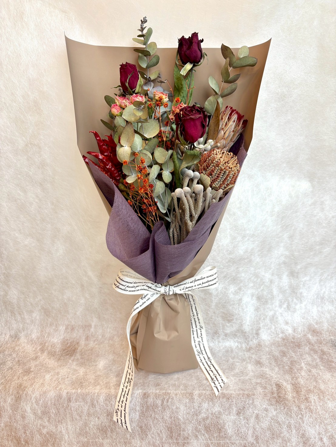 ドライフラワーなので、お水やお手入れの必要も無く、届いてそのまま飾っていただけます。