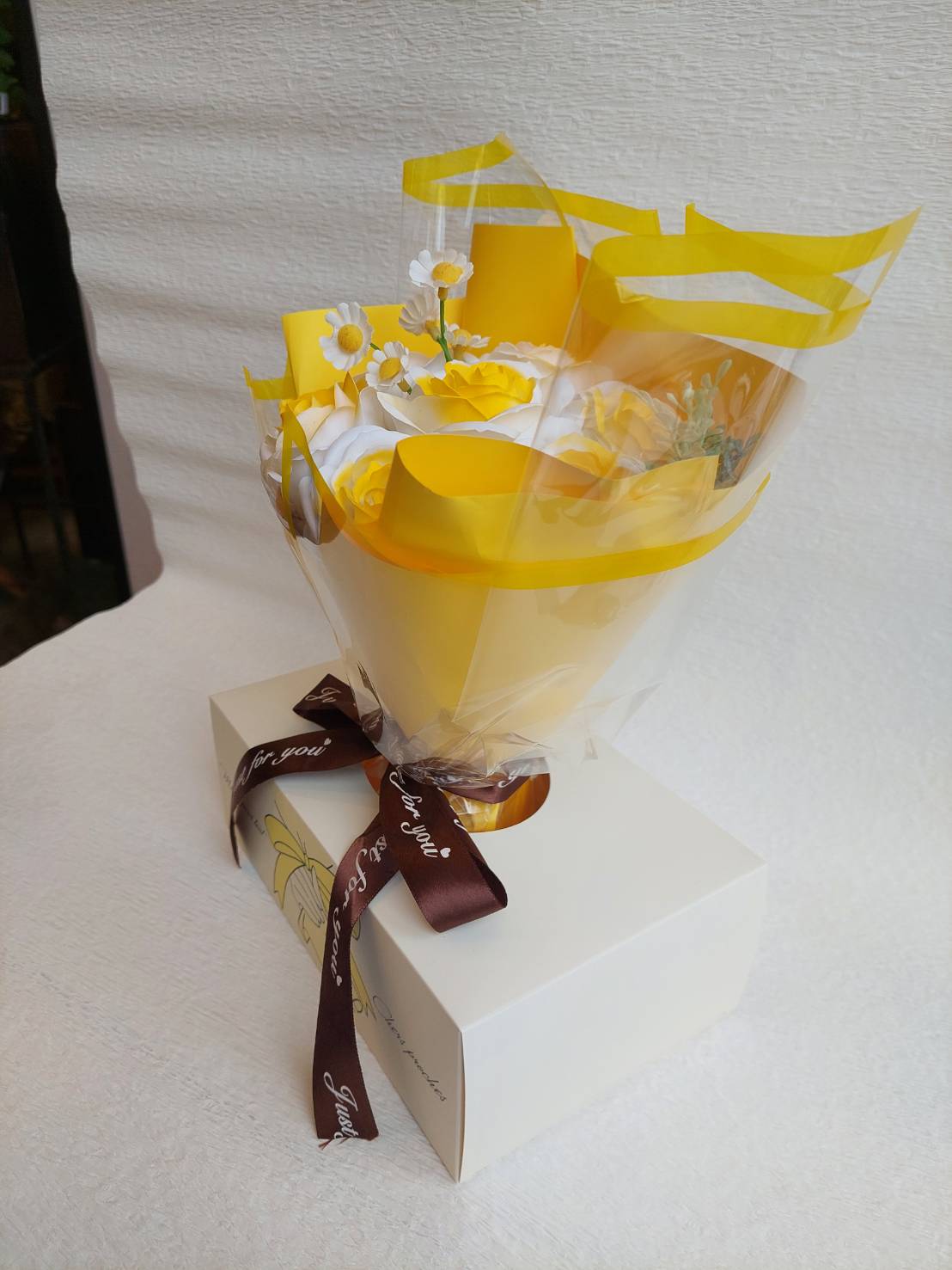 ほのかに石鹸の香りがする石鹸素材のお花です。観賞用なので石鹼としてのご使用はできません。