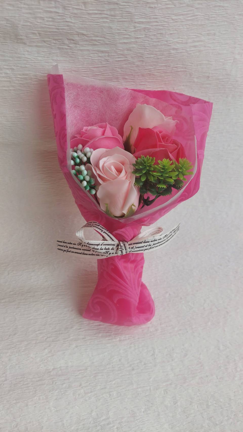 ほのかに石鹸の香りがする石鹸素材のお花です。観賞用なので石鹼としてのご使用はできません。。
