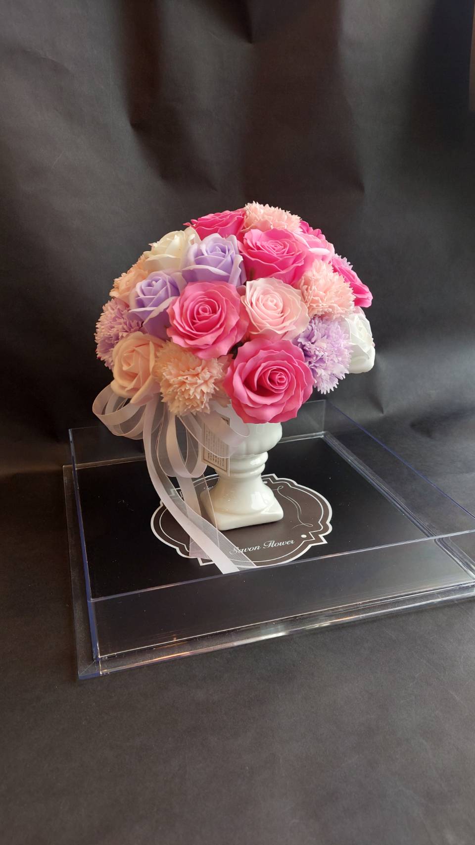 バラとカーネーションのソープフラワーケース入り(ピンク)