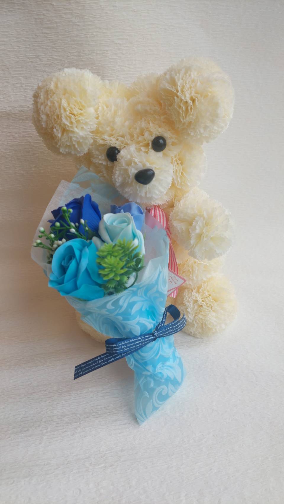 カーネーションベア クリーム(ソープフラワーブーケ付き)