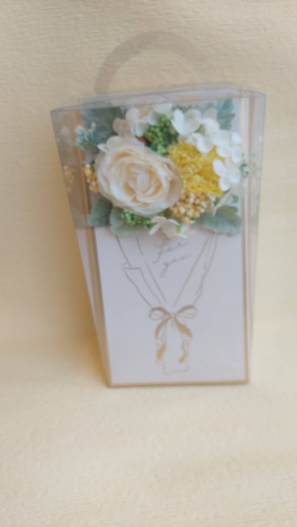 バラとカーネーションのソープフラワー ケース入り(イエロー)
