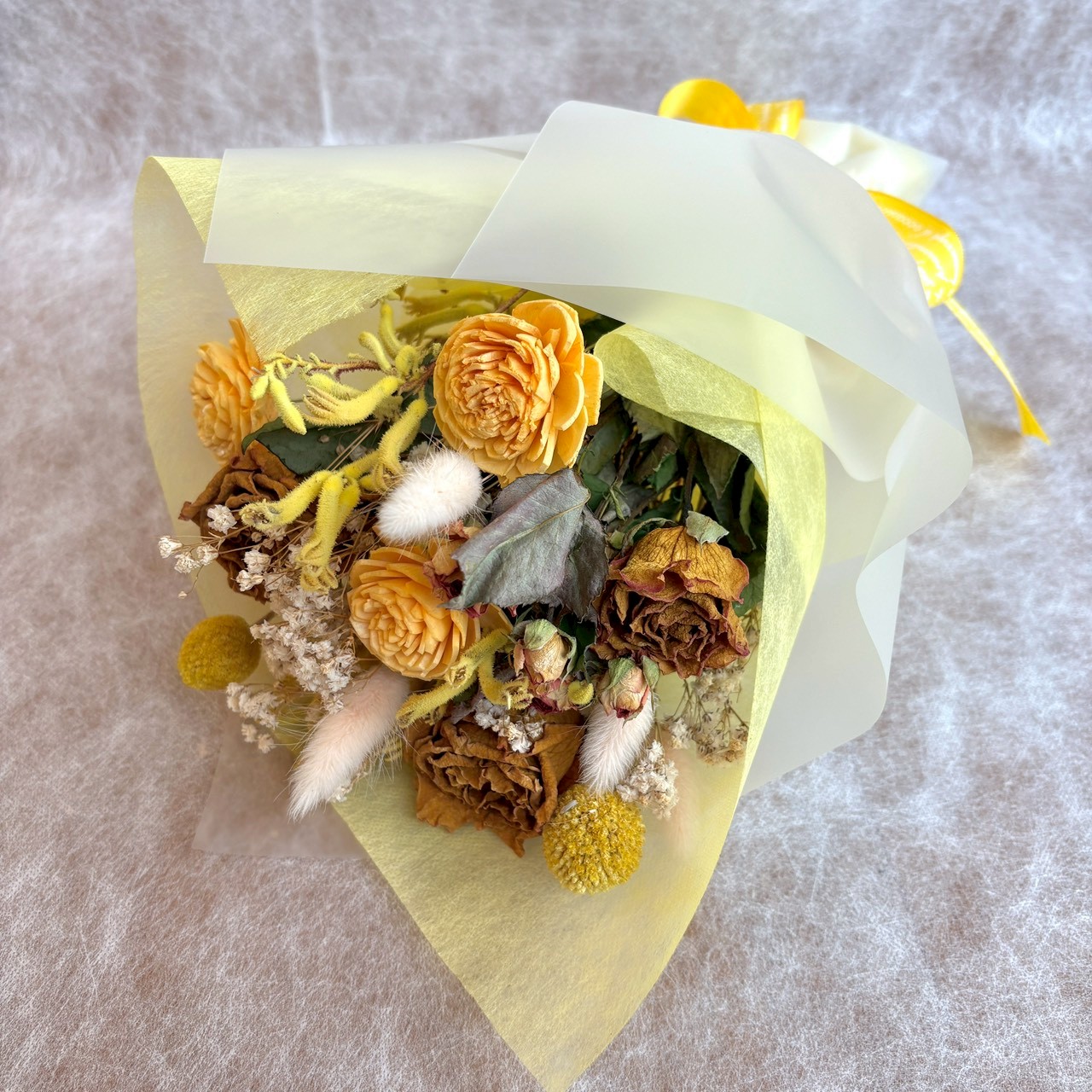 ブラウンベア付きプリザーブドフラワー(イエロー)