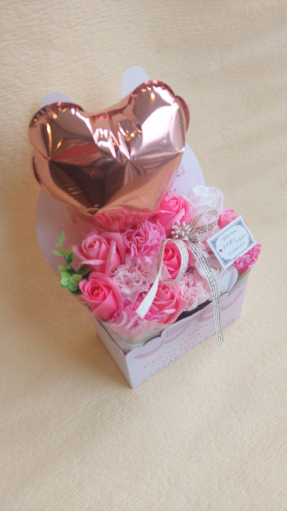 カーネーションとバラのソープフラワーアレンジメント ピンク(バルーン付き)