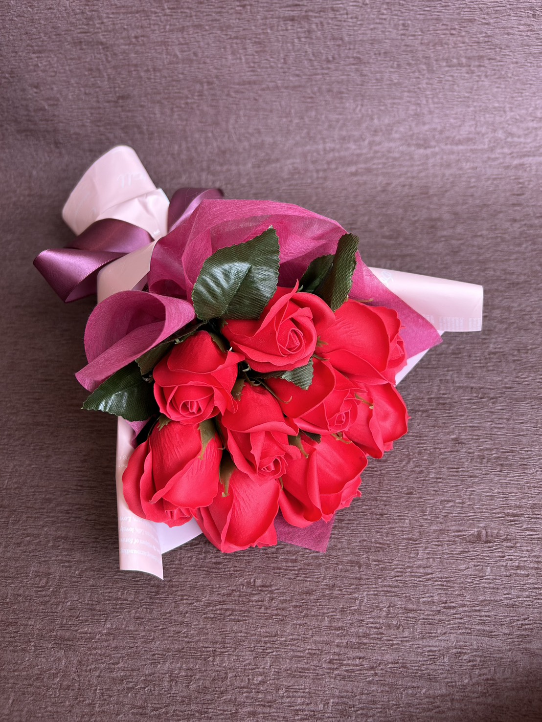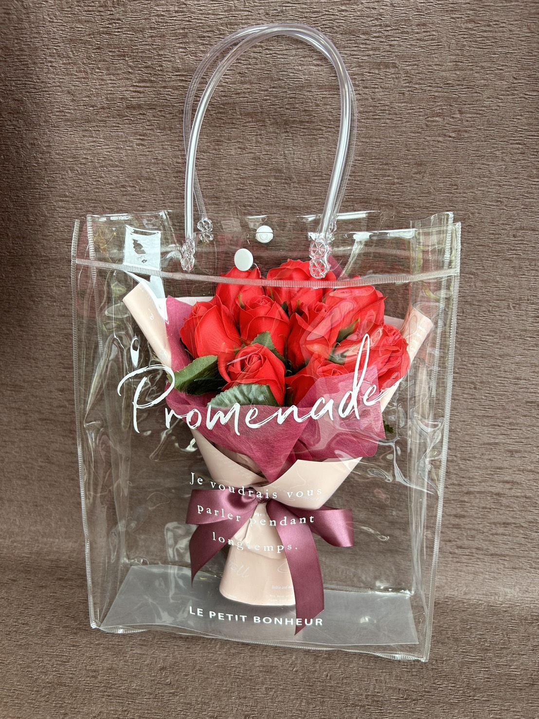 赤バラのソープフラワーのみのブーケです。クリアバック付きです。