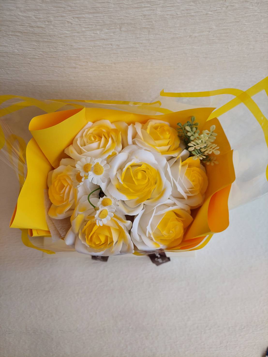 ほのかに石鹸の香りがする石鹸素材のお花です。観賞用なので石鹼としてのご使用はできません。