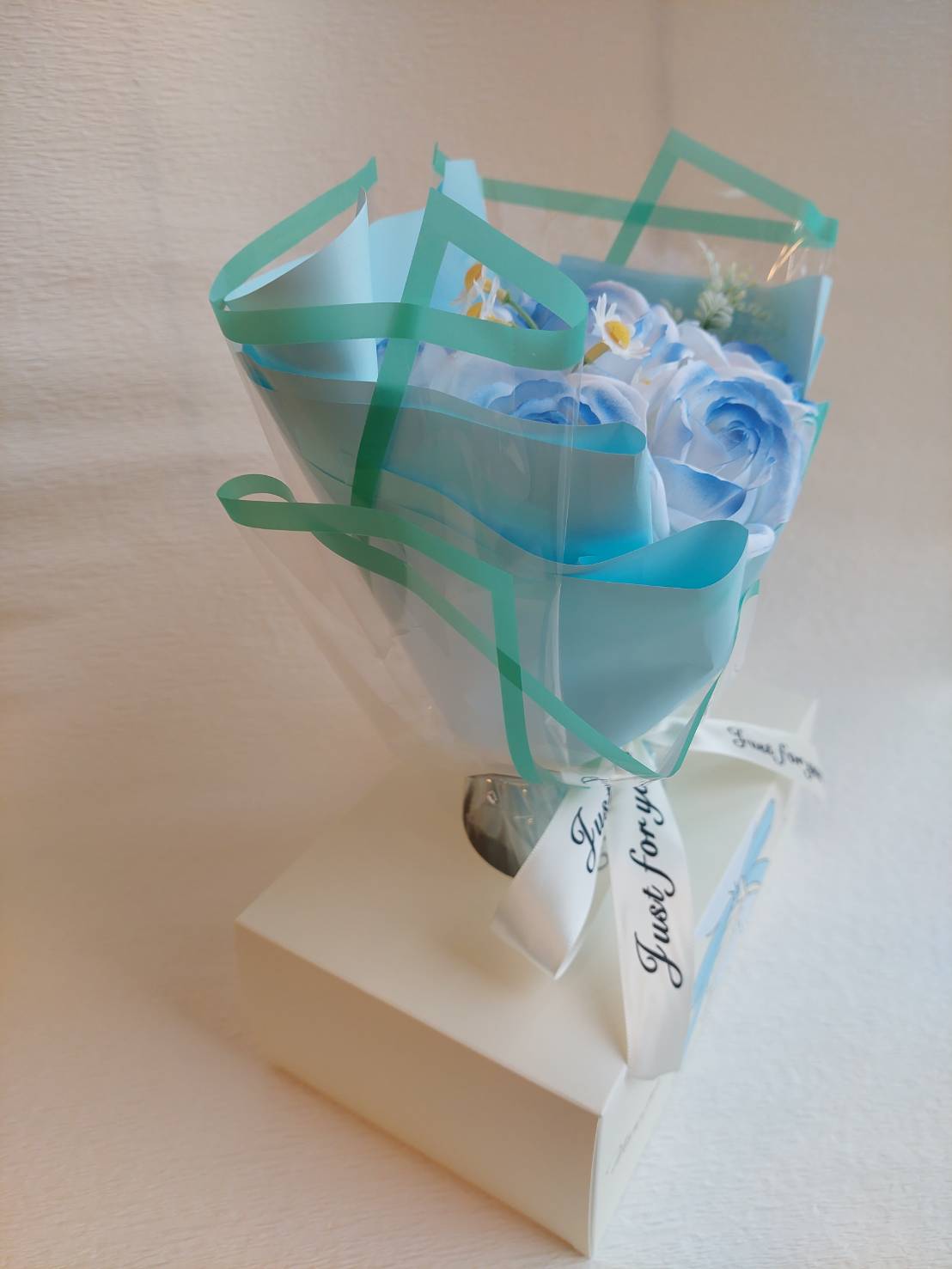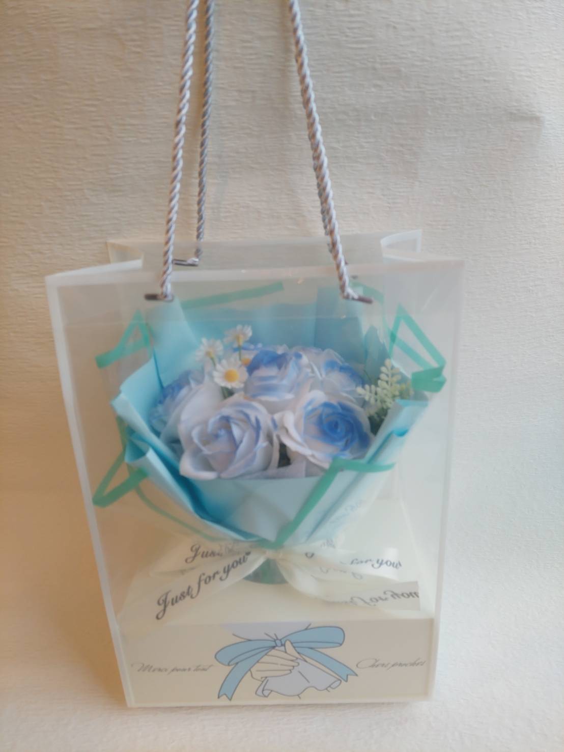 ほのかに石鹸の香りがする石鹸素材のお花です。観賞用なので石鹼としてのご使用はできません。