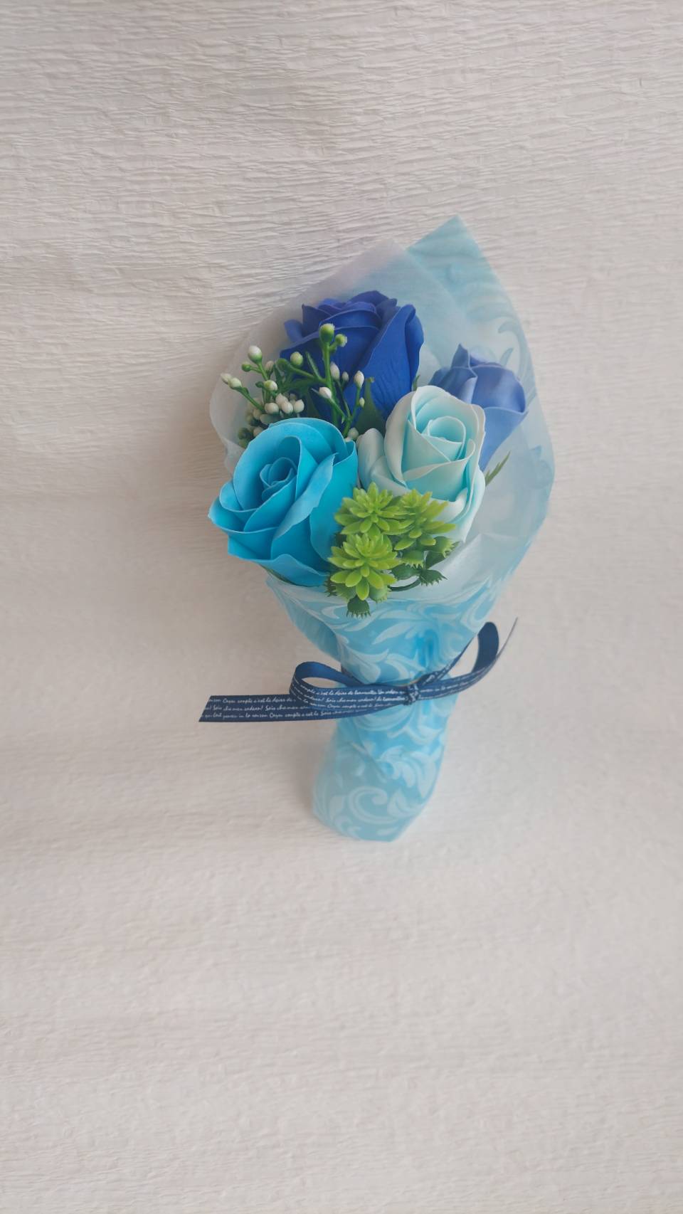 ほのかに石鹸の香りがする石鹸素材のお花です。観賞用なので石鹼としてのご使用はできません。。